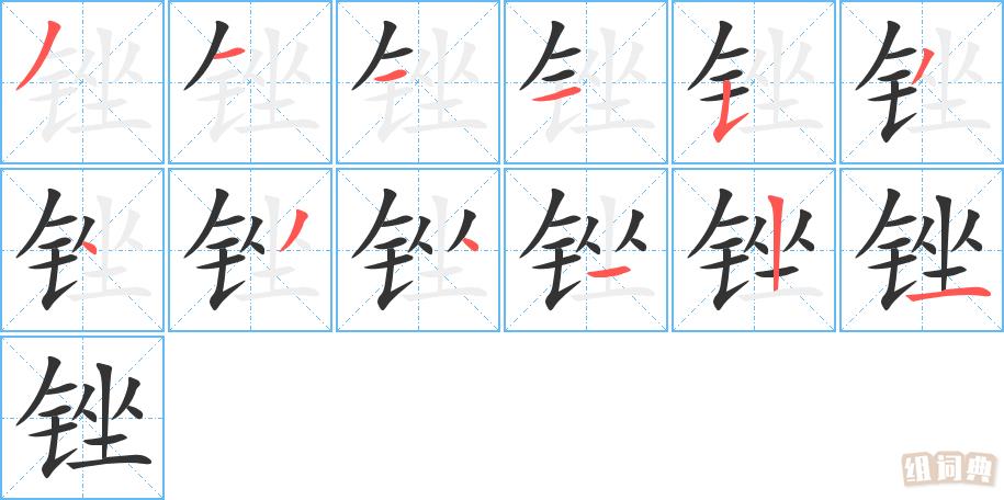 一种口大似釜之器具。《说文解字.金部》:「锉,鍑也。」《广韵.入声.屋韵》:「锉,锉,釜属。」唐.杜甫〈闻斛斯六官未归〉诗:「荆扉深蔓草,土锉冷疏烟。」 锉刀之简称。如:「板锉」、「扁锉」。明.夏言《南宫奏稿.卷四.一夷情疏》:「且夷人所贡鐡锉等件,俱无用之物。」明.杨一清《关中奏议.卷一七.提督类.一为捉获奸细构引大势回贼犯边等事》:「以致今日使西域贾回,图利中国,以玉石镔锉等项无用之物,往来神京,厚蒙赏赉。」